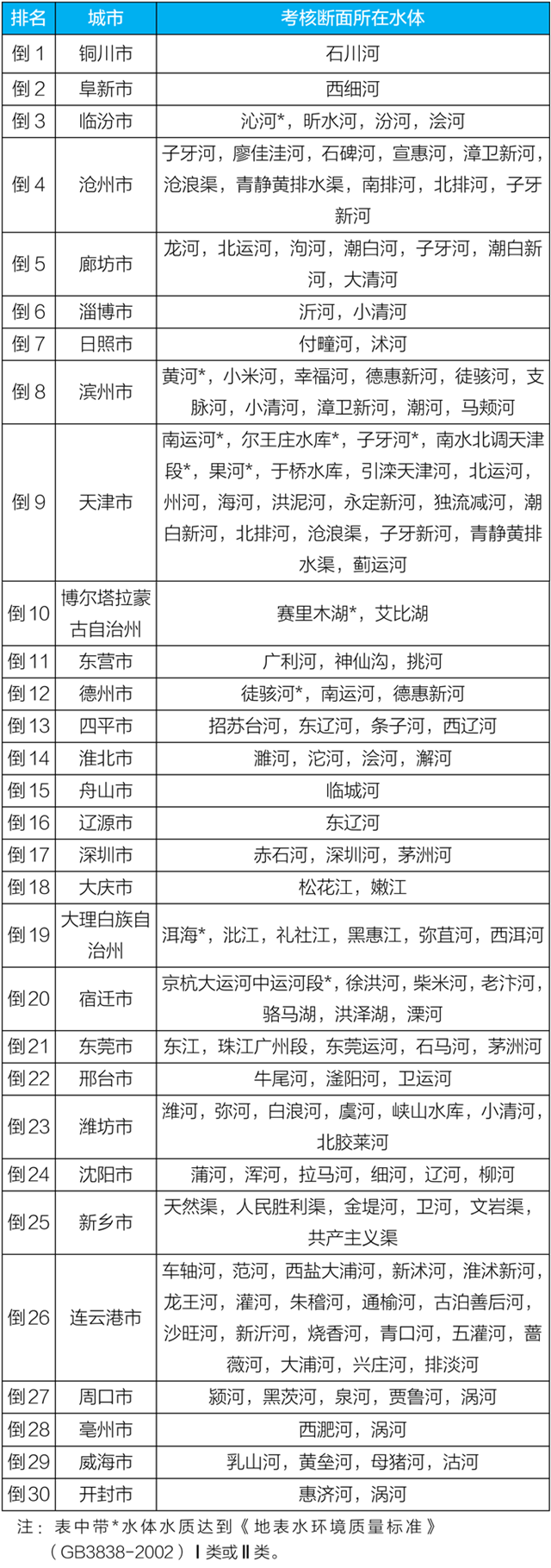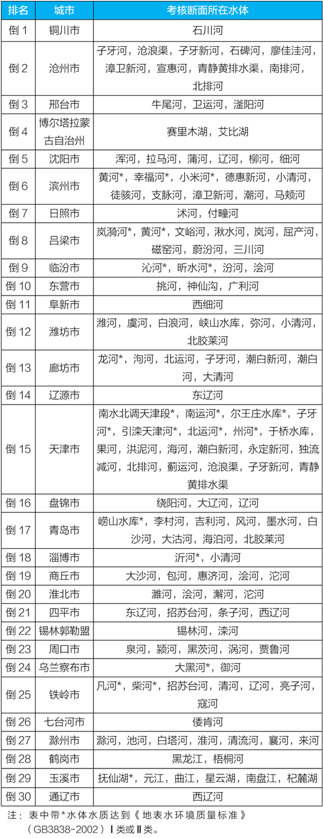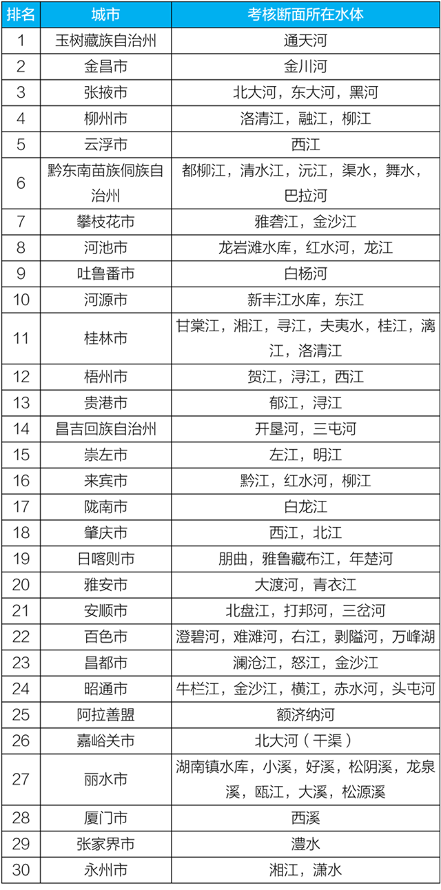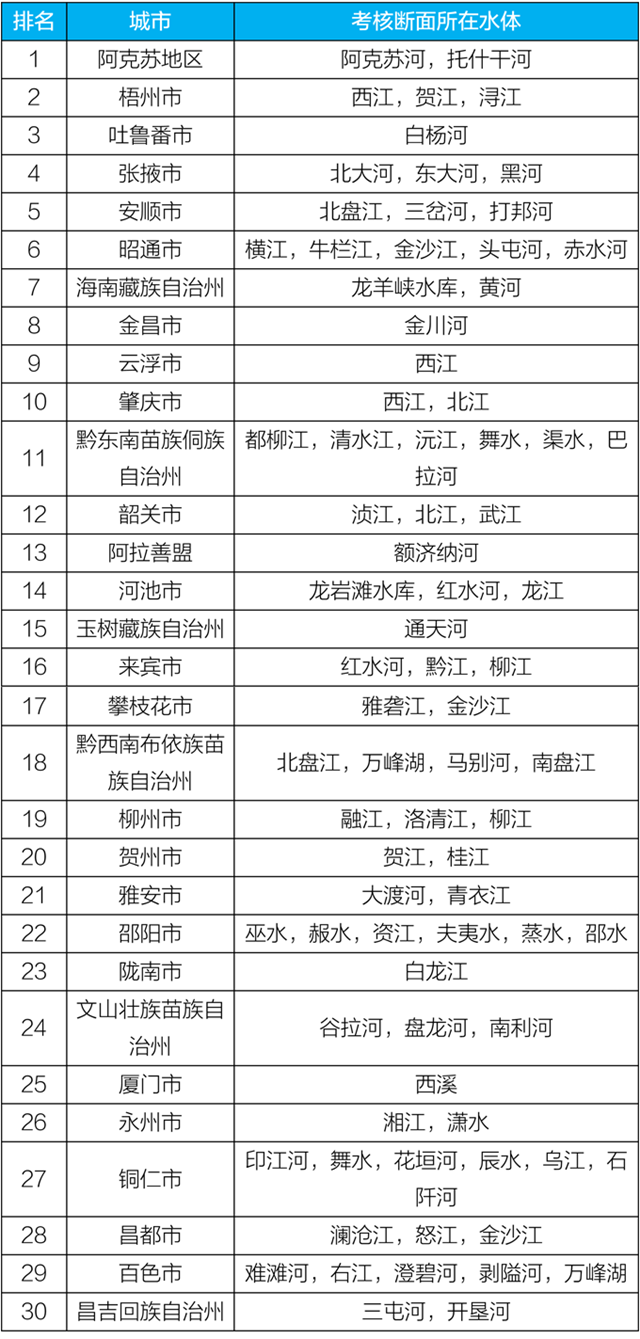 地級(jí)及以上城市國(guó)家地表水考核斷面排名
