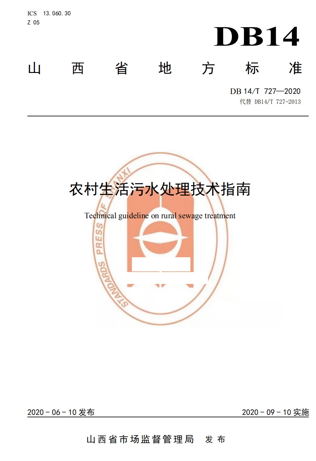 近日,山西省市場監(jiān)督管理局發(fā)布公告,《農(nóng)村生活污水處理技術(shù)指南》(DB 14/T 727-2020)于6月10日發(fā)布,9月10日正式實施。該技術(shù)指南由山西省生態(tài)環(huán)境廳提出并監(jiān)督實施,自實施之日起將代替山西省2013年發(fā)布的《山西省農(nóng)村生活污水處理技術(shù)指南》(DB 14/T 727-2013)。