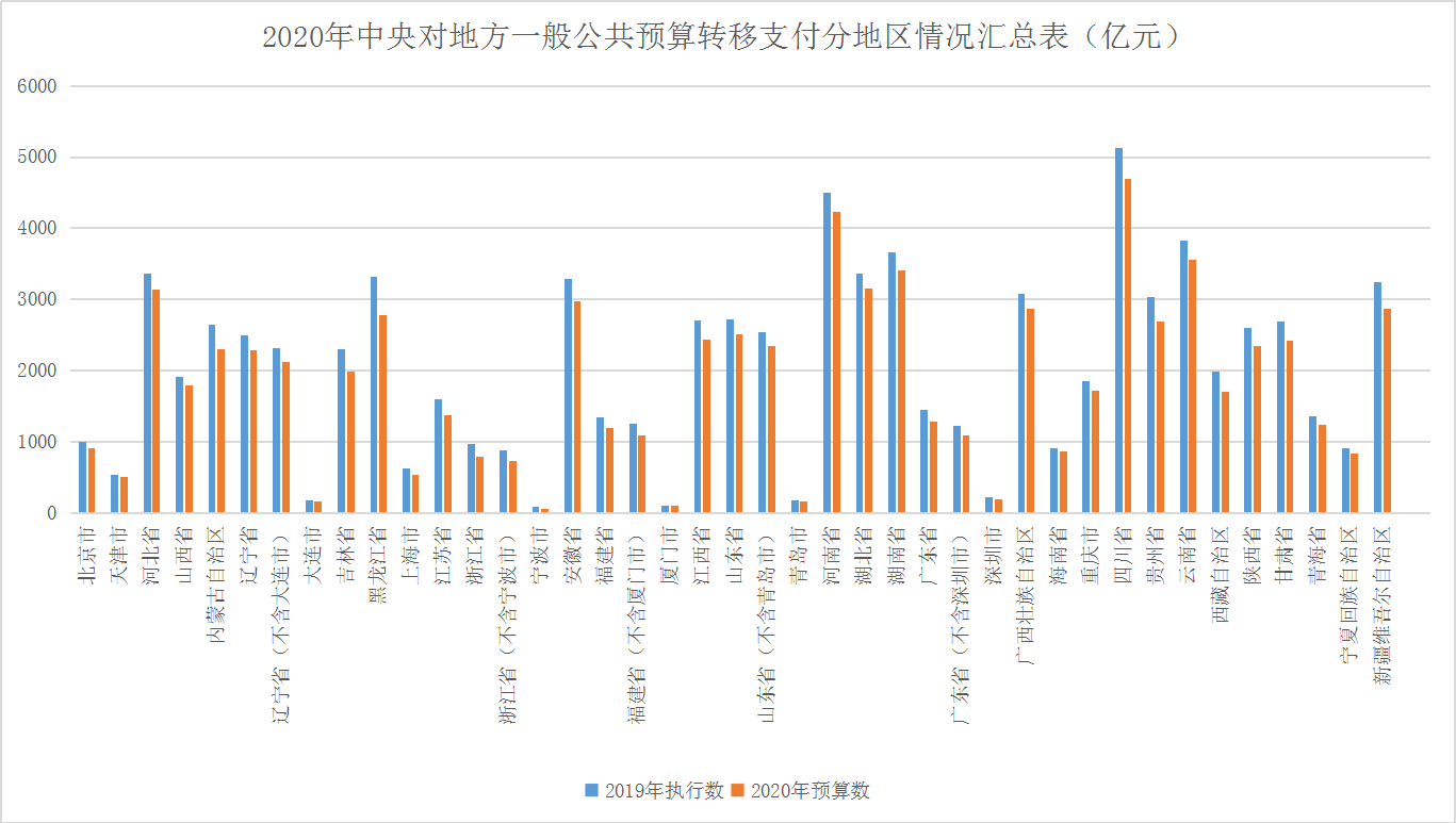 2020年中央對地方轉(zhuǎn)移支付預(yù)算數(shù)為83915億元,加上使用以前年度結(jié)轉(zhuǎn)資金1121.33億元,2020年中央對地方轉(zhuǎn)移支付支出為85036.33億元。