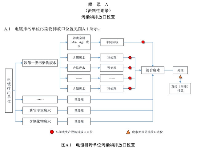 6.1.1 電鍍排污單位和專門處理電鍍廢水的集中式污水處理廠應(yīng)按照環(huán)境監(jiān)測管理規(guī)定和技術(shù)規(guī)范的要求,設(shè)計、建設(shè)、維護(hù)永久性采樣口、采樣測試平臺和排污口標(biāo)志。