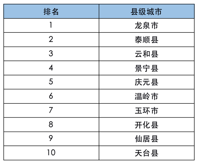 2020年5月全省縣級城市環(huán)境空氣質(zhì)量相對較好的10個城市