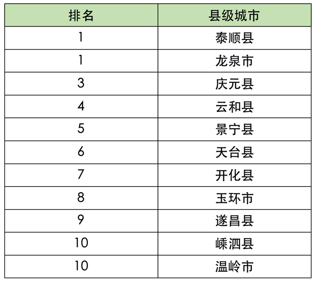 泰順縣和龍泉市并列,嵊泗縣和溫嶺市并列