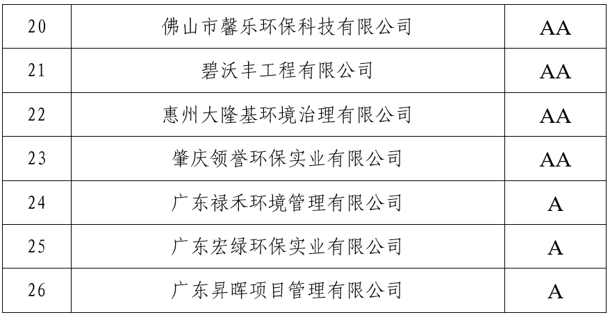 2020年第一批廣東省環(huán)境保護產(chǎn)業(yè)企業(yè)信用等級評價