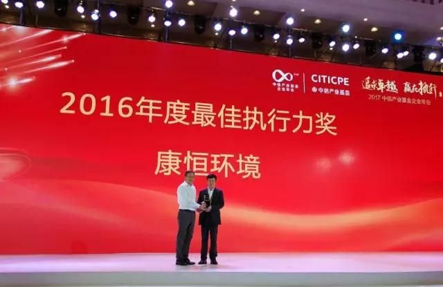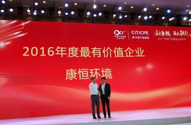 “2017中信產(chǎn)業(yè)基金企業(yè)年會”在杭州盛大召開,多家中信產(chǎn)業(yè)基金控股企業(yè)參加本屆年會。在本屆年會中,康恒環(huán)境斬獲六項(xiàng)獎(jiǎng)項(xiàng)中的三項(xiàng),榮獲中信產(chǎn)業(yè)基金2016年度唯一一家“最有價(jià)值企業(yè)”獎(jiǎng),同時(shí)榮獲“2016年度最佳執(zhí)行力獎(jiǎng)”,康恒環(huán)境董事長兼CEO龍吉生博士榮獲“2016年度優(yōu)秀CEO獎(jiǎng)"。