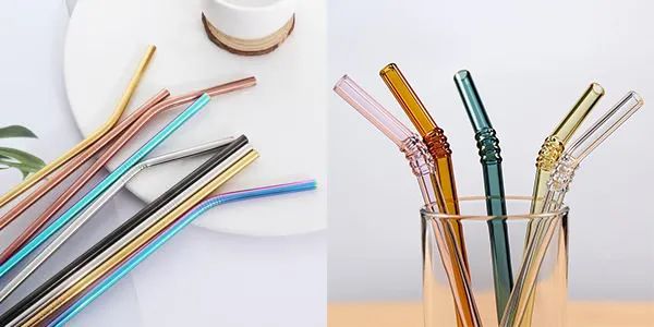 漂亮的可回收金屬吸管(左 | myshopify)和有色玻璃吸管(右 | condorbazar)