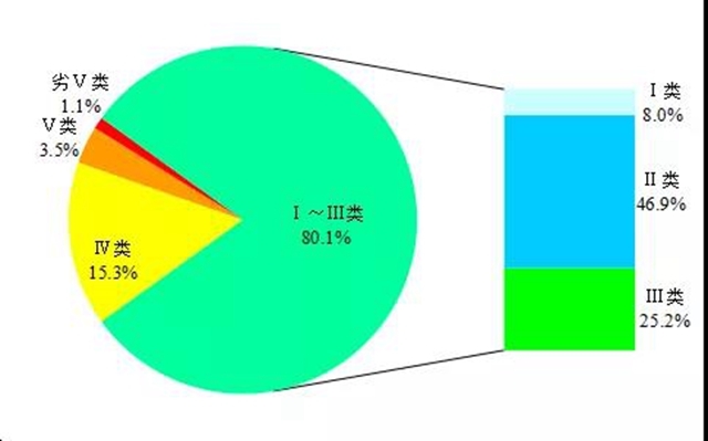 圖2 2020年1-6月全國(guó)地表水水質(zhì)類別比例