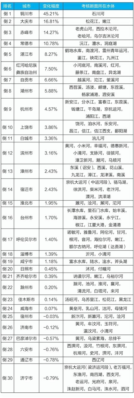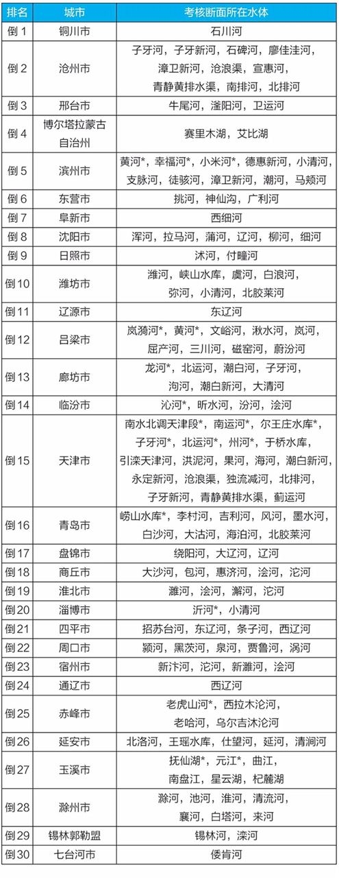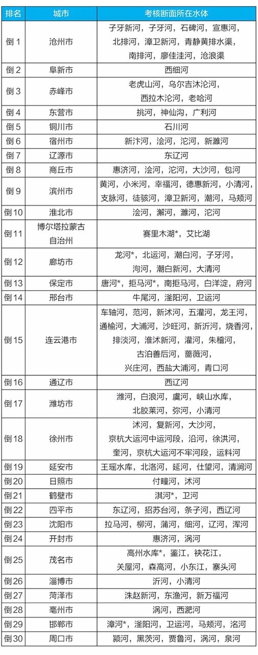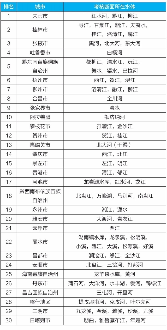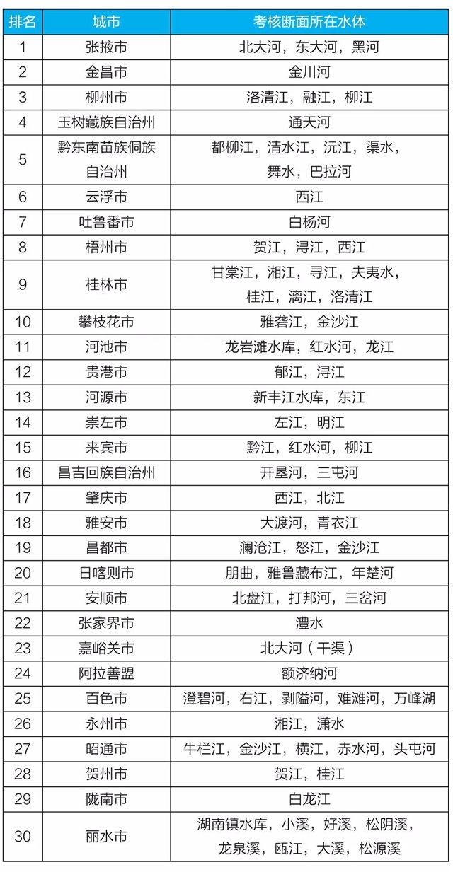 地級(jí)及以上城市國(guó)家地表水考核斷面排名