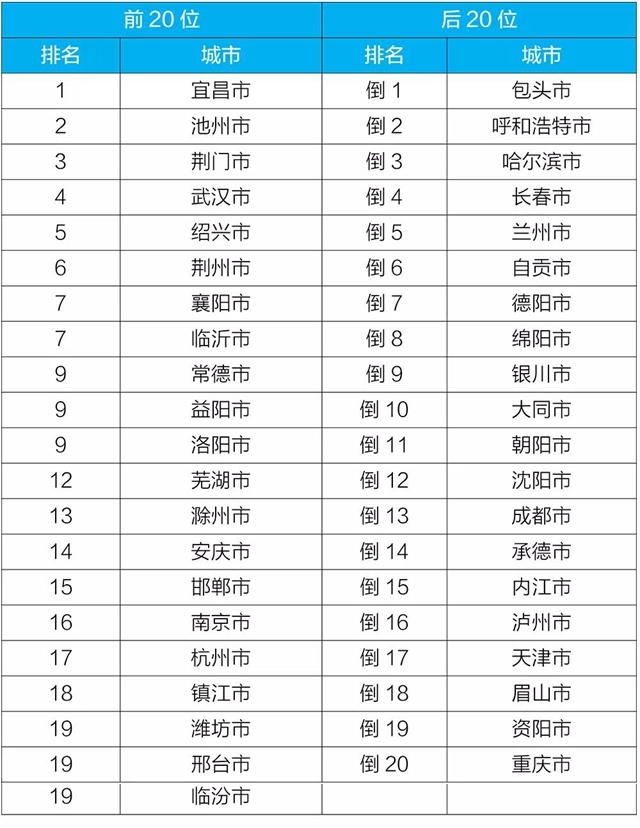 2020年1-6月168個(gè)重點(diǎn)城市排名前20位和后20位城市名單