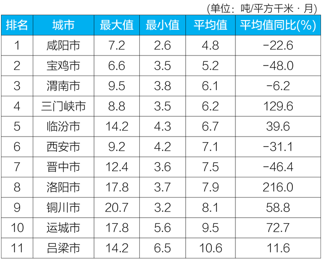 2020年6月汾渭平原11城市降塵監(jiān)測(cè)結(jié)果