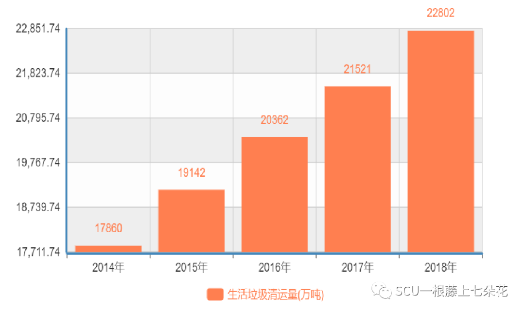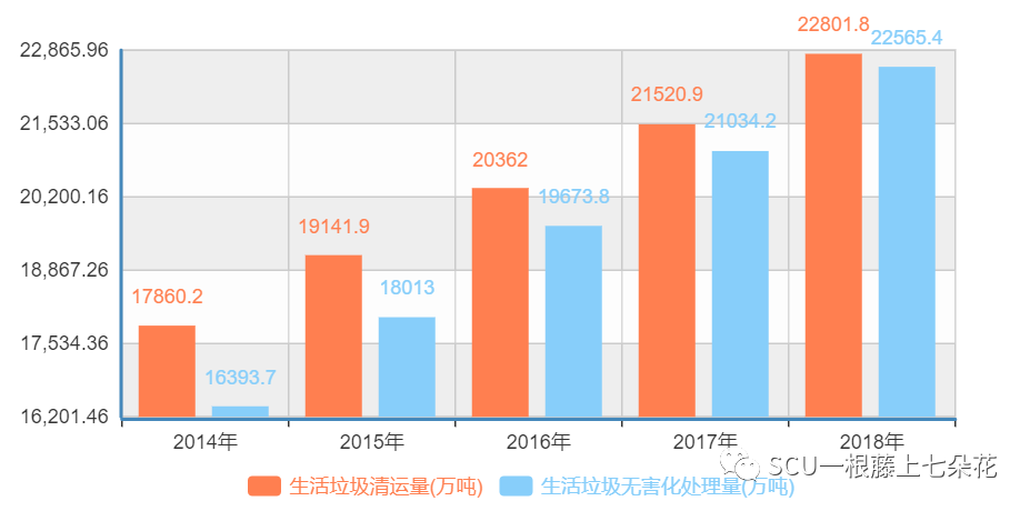 2014-2018年我國城市生活垃圾數(shù)據(jù)對比