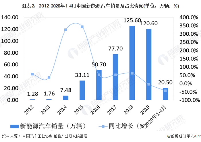 根據(jù)中汽協(xié)數(shù)據(jù)顯示,2019年我國(guó)新能源汽車總計(jì)生產(chǎn)124.2萬(wàn)輛,占汽車產(chǎn)量的4.83%,相較2018年下滑4%,主要原因?yàn)樾履茉雌囌咄似?2020年1-4月,我國(guó)新能源汽車產(chǎn)量為20.5萬(wàn)輛,占全國(guó)汽車產(chǎn)量的3.66%,比2019年同期下降44.8%,受新冠肺炎疫情影響,導(dǎo)致企業(yè)無(wú)法復(fù)工生產(chǎn),產(chǎn)量大幅度下降。