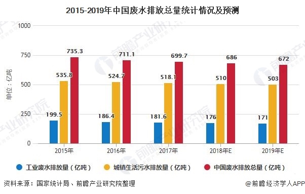 這項政策實施后,廢止了排污費征收,對保護和改善環(huán)境,減少污染物排放,推進生態(tài)文明建設(shè)具有重要的意義。前瞻初步估算2018年和2019年我國的廢水排放量仍然呈現(xiàn)下降的趨勢,預(yù)計到2019年我國廢水排放量下降至670億噸左右。