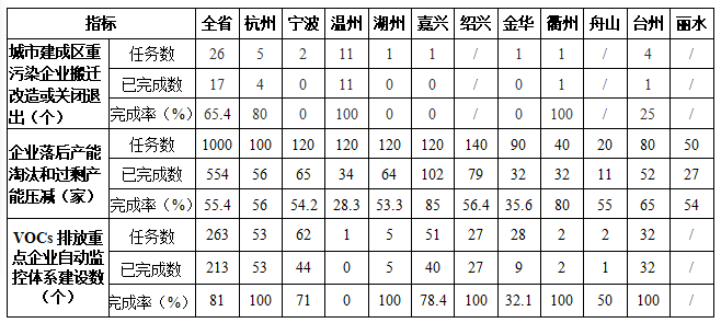 截至6月底,全省已完成17個城市建成區(qū)重污染企業(yè)搬遷改造或關閉退出,完成率為65.4%;全省已完成554家落后產能淘汰和過剩產能壓減,完成率為55.4%;全省已完成213個VOCs排放重點企業(yè)自動監(jiān)控體系建設,完成率為81%。