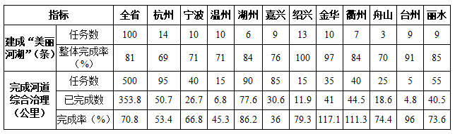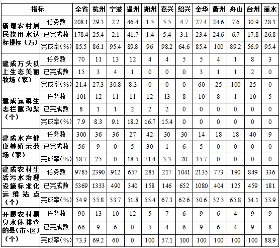 “五水共治”碧水行動重點工作績效目標進展情況