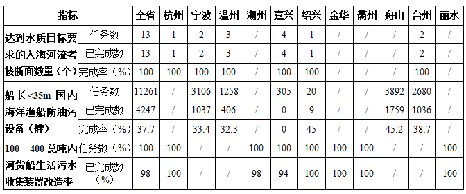 2020年全省計劃要求13個入海河流考核斷面達到水質目標,安裝11261艘船長<35m國內海洋漁船防油污設備,完成100個100—400總噸內河貨船生活污水收集裝置改造。