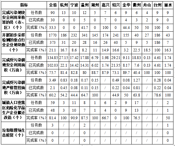 2020年全省計劃完成污染地塊安全利用率核算90個縣(市、區(qū)),開展初步采樣檢測的重點行業(yè)企業(yè)地塊1770個,完成受污染耕地安全利用134.85萬畝,受污染耕地嚴格管控3.49萬畝,城鎮(zhèn)人口密集區(qū)危險化學品生產企業(yè)搬遷改造59家,垃圾填埋場生態(tài)修復3個。
