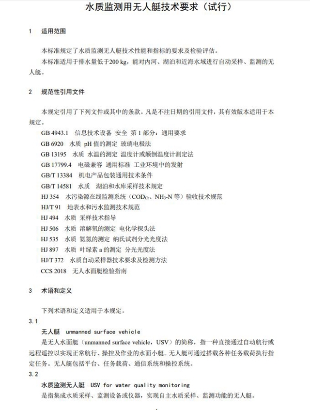 2.水質(zhì)監(jiān)測(cè)用無(wú)人艇技術(shù)要求(試行)(征求意見(jiàn)稿)