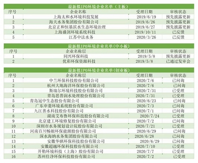 最新擬IPO環(huán)境企業(yè)名單如下: