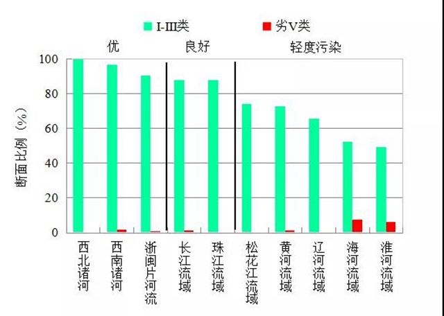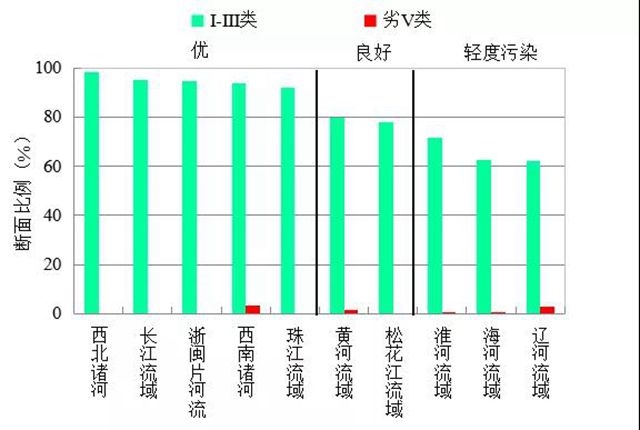 1-7月,長江、黃河、珠江、松花江、淮河、海河、遼河等七大流域及西北諸河、西南諸河和浙閩片河流Ⅰ-Ⅲ類水質(zhì)斷面比例為84.3%,同比上升6.5個百分點;劣Ⅴ類為0.6%,同比下降3.6個百分點。主要污染指標為化學需氧量、高錳酸鹽指數(shù)和五日生化需氧量。其中,西北諸河、長江流域、浙閩片河流、西南諸河和珠江流域水質(zhì)為優(yōu),黃河和松花江流域水質(zhì)良好,淮河、海河和遼河流域為輕度污染。