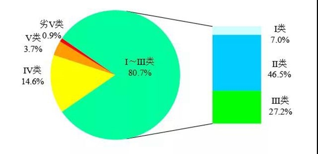 圖1 2020年7月全國地表水水質(zhì)類別比例