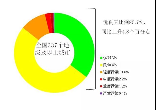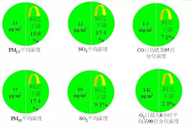 1-7月,全國337個地級及以上城市平均優(yōu)良天數(shù)比例為85.7%,同比上升4.8個百分點;PM2.5濃度為33微克/立方米,同比下降10.8%;PM10濃度為55微克/立方米,同比下降15.4%;O3濃度為142微克/立方米,同比下降2.1%;SO2濃度為10微克/立方米,同比下降9.1%;NO2濃度為22微克/立方米,同比下降15.4%;CO濃度為1.3毫克/立方米,同比下降7.1%。