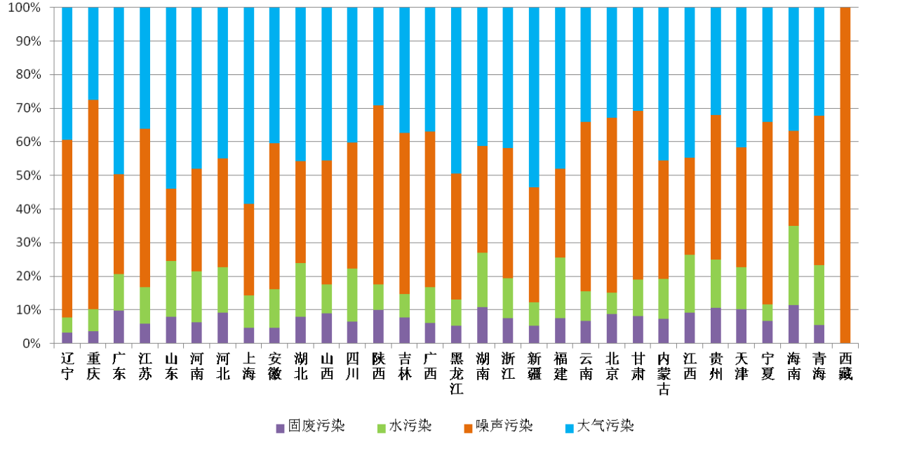 (注:一件舉報(bào)中可能同時(shí)涉及多種問(wèn)題,因此各污染類(lèi)型之和≥100%。)