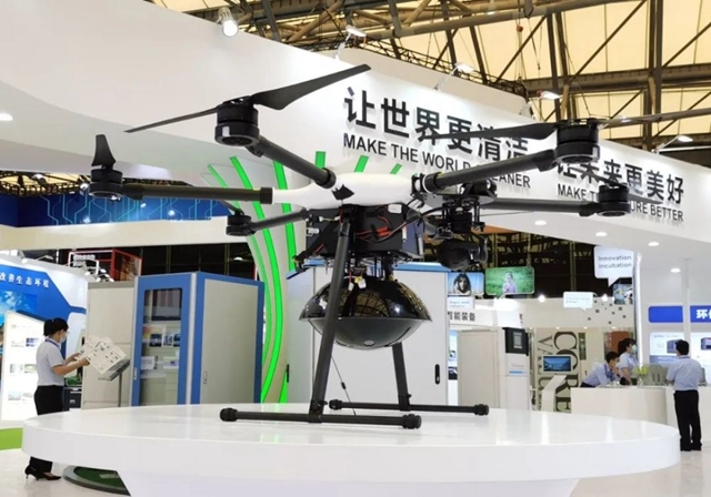 盈峰環(huán)境的展位上,5G無人駕駛環(huán)衛(wèi)機(jī)器人、自動(dòng)巡航的監(jiān)測(cè)無人機(jī)等多款產(chǎn)品一經(jīng)展出,就吸引了各地客商前來花式體驗(yàn),為環(huán)博會(huì)帶來了助燃劑!