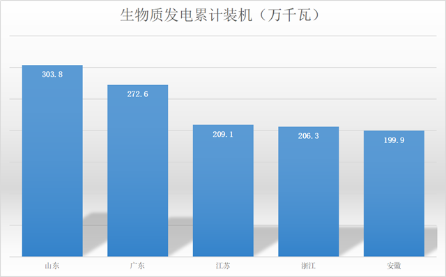 就像上圖所表現(xiàn)的,東部沿海和廣東地區(qū)生物質(zhì)能發(fā)展情況較好。據(jù)悉,截至2019年底,山東省生物質(zhì)發(fā)電裝機容量超過300萬千瓦,廣東省也有近240萬千瓦。