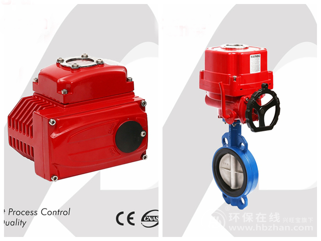 圖為電動(dòng)執(zhí)行器(左)與紅色防爆電動(dòng)對(duì)夾蝶閥(右)