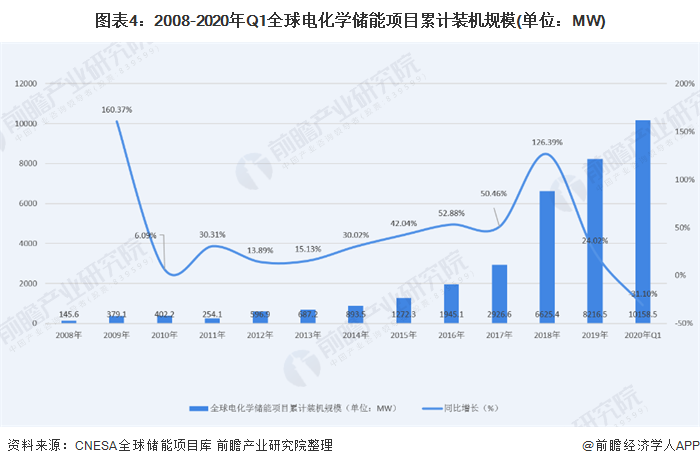 2020年第一季度,全球新增投運(yùn)電化學(xué)儲(chǔ)能項(xiàng)目裝機(jī)規(guī)模為140.3MW,同比下滑31.1%。