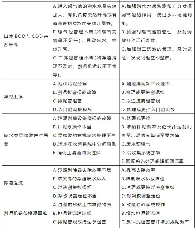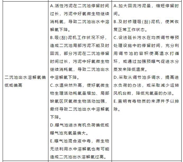 4、二沉池異常處置表