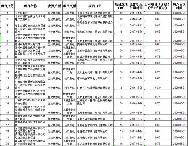 其中納入補(bǔ)貼清單的生物質(zhì)能發(fā)電項(xiàng)目列表如下: