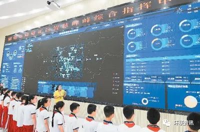 在河北省邯鄲市峰峰礦區(qū)智慧峰峰綜合指揮中心,春光小學的學生們參觀環(huán)保實時監(jiān)控。郝群英攝(人民圖片)