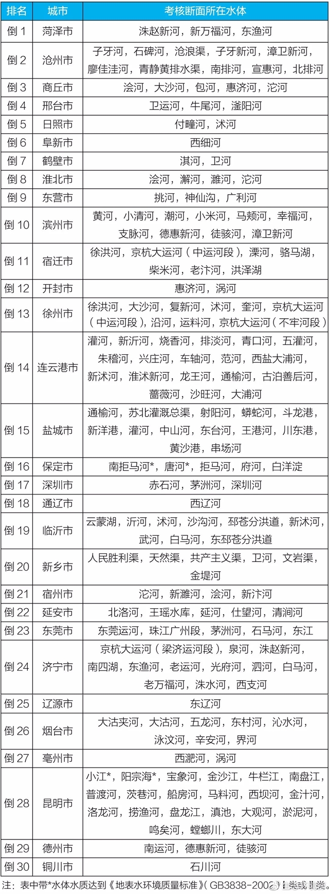 2020年1-8月國家地表水考核斷面水環(huán)境質(zhì)量狀況排名后30位城市及所在水體?