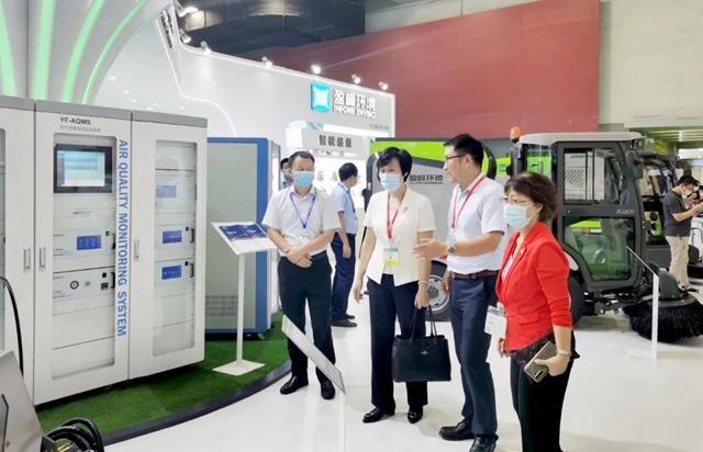 盈峰環(huán)境執(zhí)行副總裁鄒淑峰向廣東省住房和城鄉(xiāng)建設(shè)廳副廳長劉瑋、廣東省環(huán)境衛(wèi)生協(xié)會(huì)會(huì)長陳善坤詳細(xì)介紹環(huán)境監(jiān)測設(shè)備