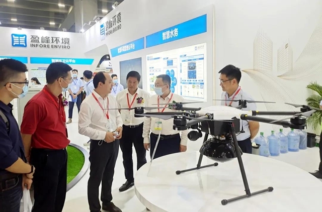 盈峰環(huán)境執(zhí)行副總裁蘭東洋向廣東省生態(tài)環(huán)境廳副廳長陳金鑾詳細(xì)介紹無人機(jī)環(huán)境監(jiān)測系統(tǒng)