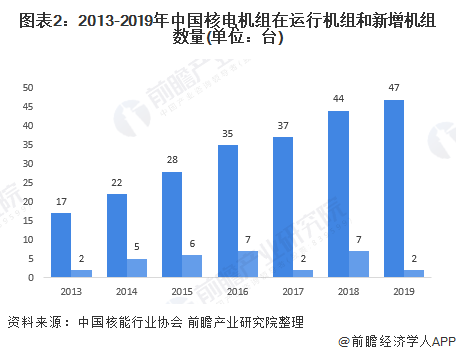 截至2019年,中國運(yùn)行核電機(jī)組共47臺(不含臺灣地區(qū)),裝機(jī)容量為48751.16MWe(額定裝機(jī)容量),2019年1-12月全國共有2臺核電機(jī)組完成首次裝料和并網(wǎng)運(yùn)行。