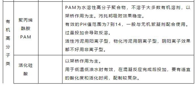 絮凝劑品種的選擇,應(yīng)根據(jù)污水絮凝沉淀試驗結(jié)果或參照相似水質(zhì)條件下的運行經(jīng)驗等,經(jīng)綜合比較確定。常用的絮凝劑宜按照下表采用。