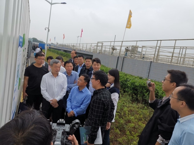 啟動(dòng)儀式后,各位領(lǐng)導(dǎo)專家考察了本次生活污水一體化設(shè)備測試活動(dòng)地點(diǎn)--長沙市聯(lián)泰水質(zhì)凈化有限公司(岳麓污水處理廠),易廳長、江處長蒞臨安力斯環(huán)境賽博集裝箱一體化設(shè)備現(xiàn)場進(jìn)行參觀指導(dǎo),并詢問了安力斯高級工藝工程師羅工一些具體的技術(shù)指標(biāo)問題,對安力斯的產(chǎn)品和技術(shù)給予了充分的肯定。