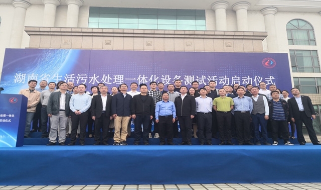 9月24日上午,湖南省生活污水一體化設(shè)備測試活動(dòng)啟動(dòng)儀式在長沙舉行。湖南省住建廳易廳長、村鎮(zhèn)處江處長等主要領(lǐng)導(dǎo)參加了剪彩儀式,來自各地級市住建局等200多位相關(guān)廳局及市縣排水主管部門人員參會(huì)。