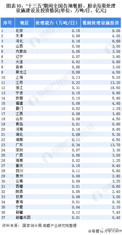 注:國家統(tǒng)計局現(xiàn)僅公布至2018年數(shù)據(jù),2019年數(shù)據(jù)為前瞻結(jié)合項目新建情況測算而來,屆時以官方發(fā)布數(shù)據(jù)為準(zhǔn),下同。2019年11月,住房和城鄉(xiāng)建設(shè)部發(fā)布了《生活垃圾分類標(biāo)志》新版標(biāo)準(zhǔn)。新標(biāo)準(zhǔn)中,針對推行地區(qū)的差異,中國政府將餐廚垃圾、廚余垃圾或者“濕垃圾”統(tǒng)一為廚余垃圾。在中國國家領(lǐng)導(dǎo)人推進的垃圾分類的大潮下,廚余垃圾處理將成為中國政府垃圾處理工作的重心,廚余垃圾處理行業(yè)將在垃圾分類的推行過程中得到廣泛關(guān)注。