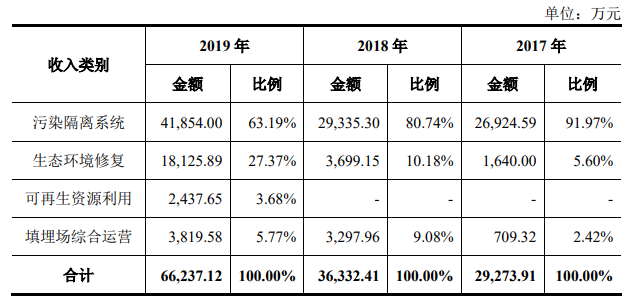 據(jù)其2020年7月6日的招股書顯示,是一家專業(yè)從事固廢污染防治技術(shù)研發(fā)并應(yīng)用于污染防治系統(tǒng)構(gòu)建和運(yùn)營(yíng)業(yè)務(wù)的高新技術(shù)企業(yè),主要業(yè)務(wù)包括污染隔離系統(tǒng)、生態(tài)環(huán)境修復(fù)、可再生資源利用、填埋場(chǎng)綜合運(yùn)營(yíng)等。