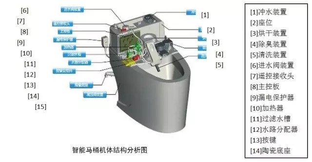通過下面的圖我們可以初步了解一下智能馬桶的機(jī)體構(gòu)成。