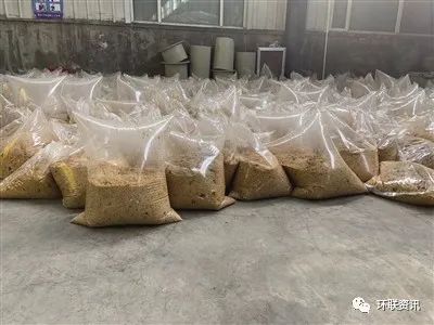 大件垃圾粉碎后的實(shí)木碎末與發(fā)酵的餐廚垃圾攪拌成為飼料
