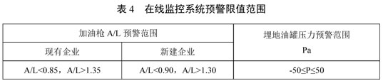 5.3.5 當(dāng)在線監(jiān)控系統(tǒng)預(yù)警后,加油站應(yīng)及時(shí)檢查加油站油氣回收系統(tǒng)預(yù)警的原因,并采取相應(yīng)措施。
