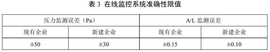 4.7 在線監(jiān)控系統(tǒng)準(zhǔn)確性應(yīng)執(zhí)行表3規(guī)定的限值。
