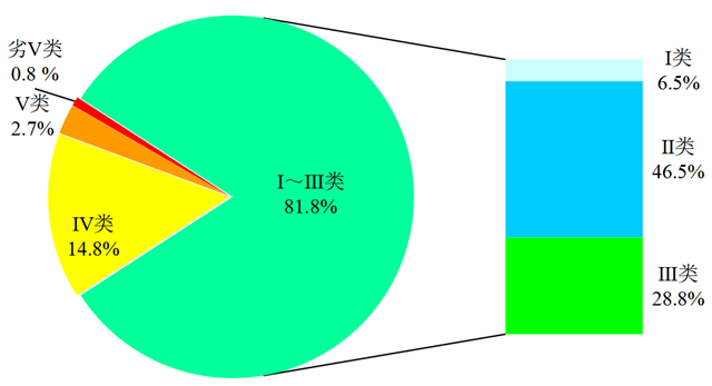 圖2 2020年1-10月全國地表水水質類別比例