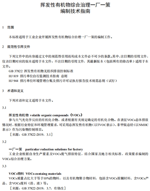 近日,中華環(huán)保聯(lián)合會批準(zhǔn)發(fā)布了《揮發(fā)性有機物綜合治理一廠一策編制技術(shù)指南》團體標(biāo)準(zhǔn),詳細(xì)到目錄和關(guān)鍵指標(biāo)。詳情如下: