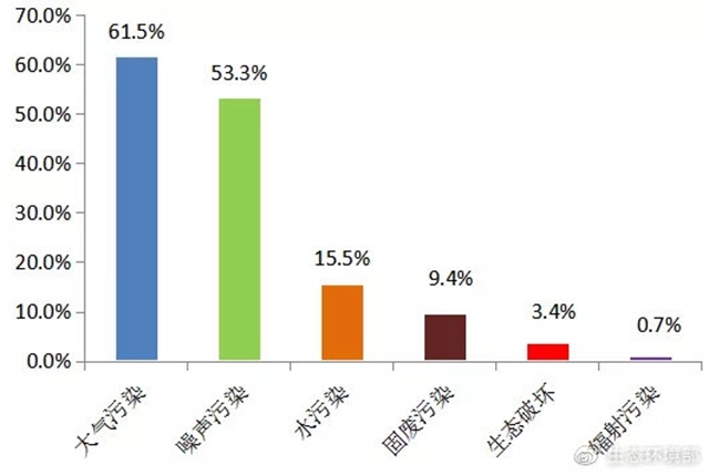 (注:一件舉報(bào)可能涉及多種問題,因此各污染類型舉報(bào)占比之和≥100%。)