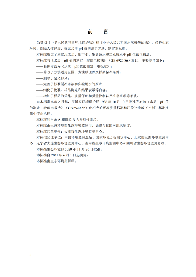 《水質(zhì) pH值的測(cè)定 電極法》(HJ 1147-2020)
